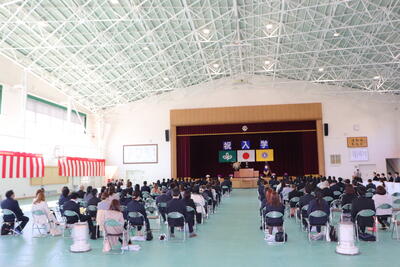 また、多くの方より祝電・祝詞をいただきました。いただいた祝電・祝詞は本校の体育館後方に掲示して入学生・保護者に見ていただきました。この場をお借りして感謝申し上げます。