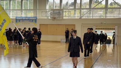 4月8日(水)に入学式を行いました。今年度の登米高校は、48名の新入生を迎えました。天候にも恵まれ、正門の桜が開花する中、新入生の希望に満ちた姿が一層映えました。生徒会執行部と有志による校歌紹介もなされました。