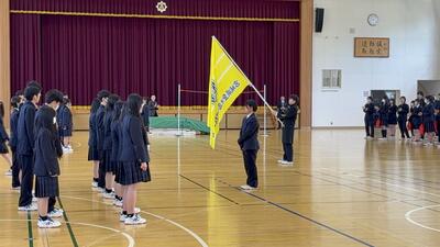 4月9日(木)に対面式・部活動紹介を行いました。生徒会執行部が先導のもと、新入生は緊張した面持ちで入場していました。部活動紹介では、各部が工夫を凝らした紹介を行い、盛り上がりを見せていました。